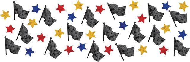 Comprend des découpes colorées en aluminium en forme de Flash McQueen, de drapeaux à damier et d'étoiles