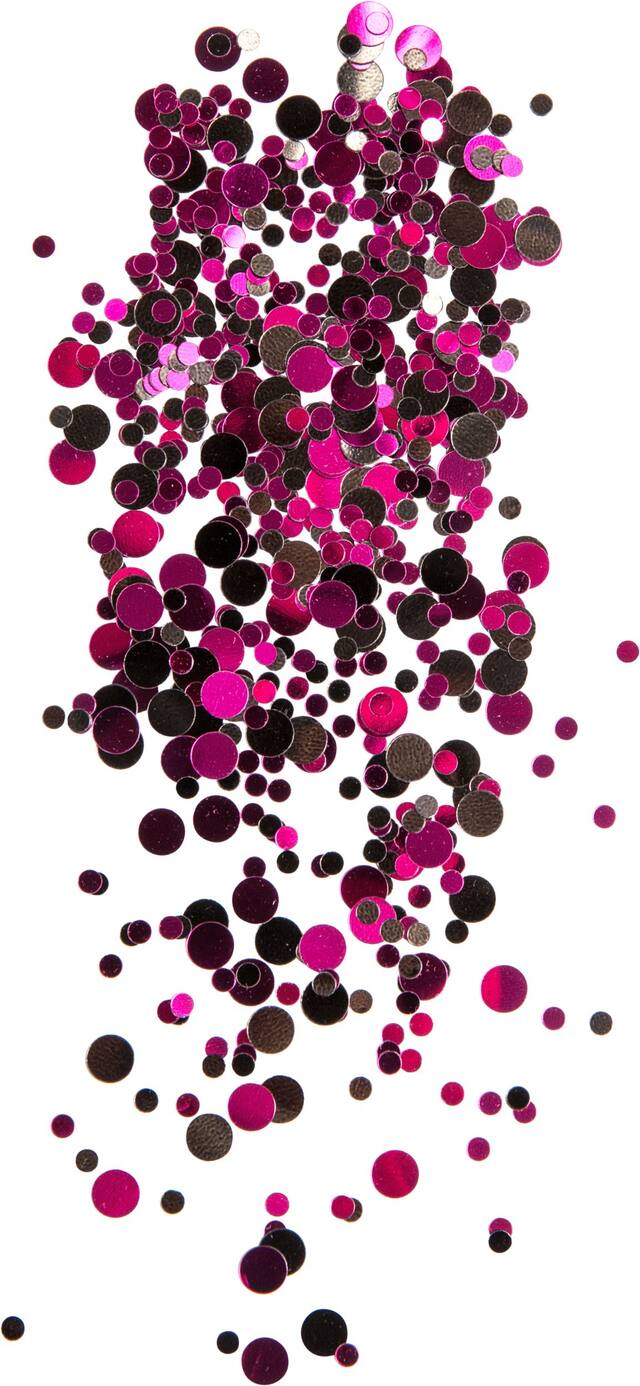 3 paquets de confettis avec 3 modèles : des pois métalliques noirs et roses, des bagues à diamants, des découpes en papier cartonné de cercles, de martinis et de bagues de fiançailles, et un titre « Team Bride »