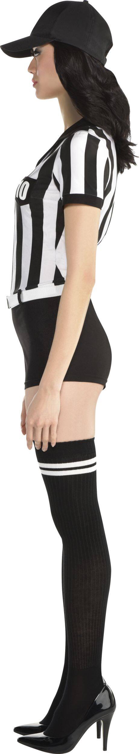 Présentez-vous à la fête d'Halloween avec un air officiel grâce au costume d'arbitre sexy pour femmes! Costume comprenant un combicourt conçu pour ressembler à un chandail noir et blanc rayé et un short noir. Costume comprenant aussi une ceinture, une casquette et un sifflet. Vous êtes prête à faire appliquer les règles de la fête d'Halloween en portant ce costume d'arbitre! Chaussures et chaussettes non incluses.