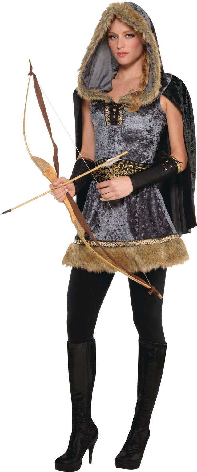 Costume archer talentueux pour adulte comprend une robe à capuchon avec un capuchon surdimensionné garni de fausse fourrure luxueuse