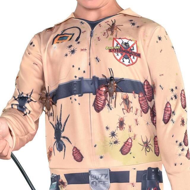 Comprend une combinaison brune avec des insectes attachés, un chapeau brun, des lunettes et un vaporisateur pour sac à dos pour que votre enfant ait l'air d'un exterminateur d'insectes