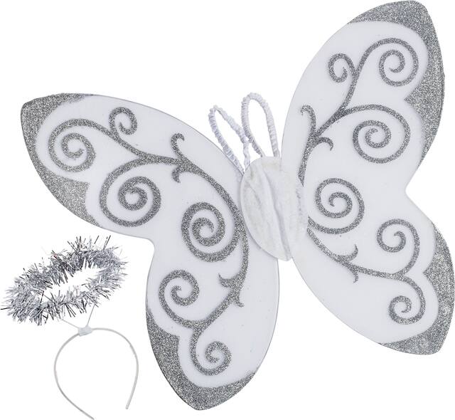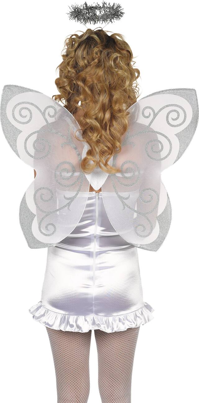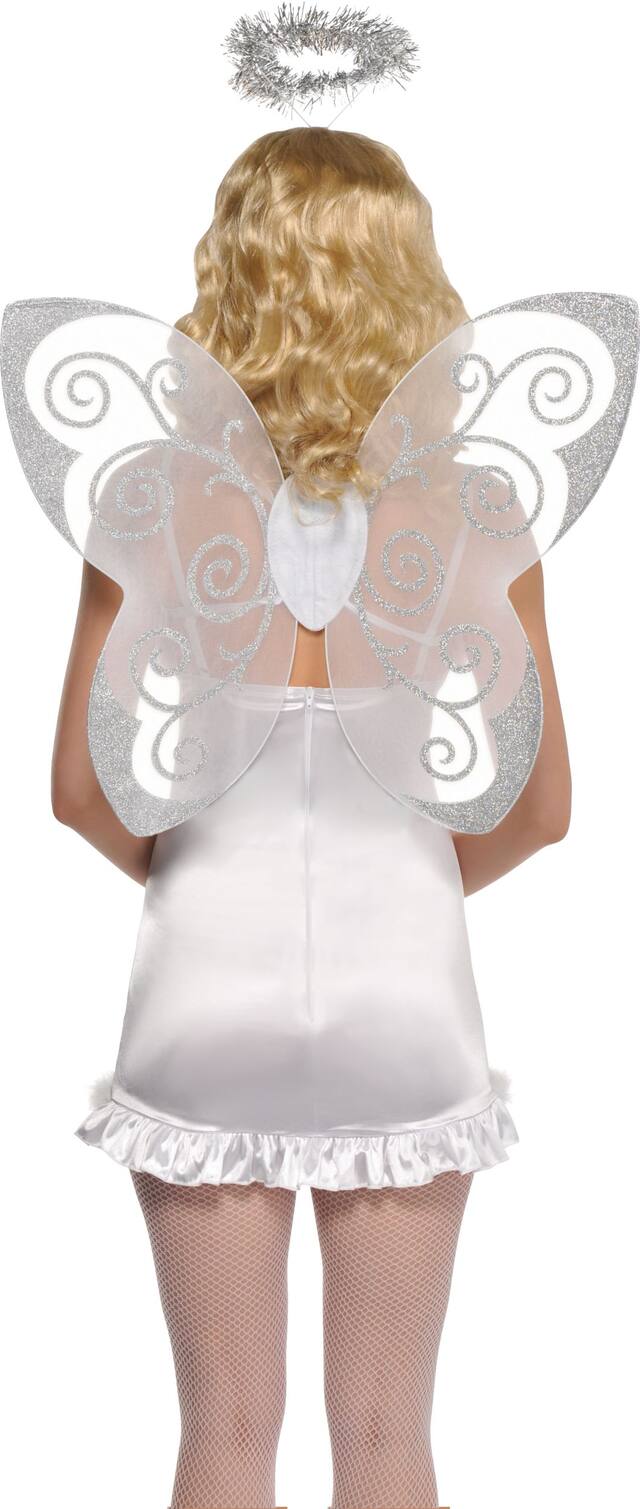 Ces produits similaires présentés ci-dessous pourraient vous intéresser.Accessoires d'ange, adulte comprenant des ailes d'ange blanches à paillettes argentées, des bretelles et un serre-tête à halo en guirlande argentée