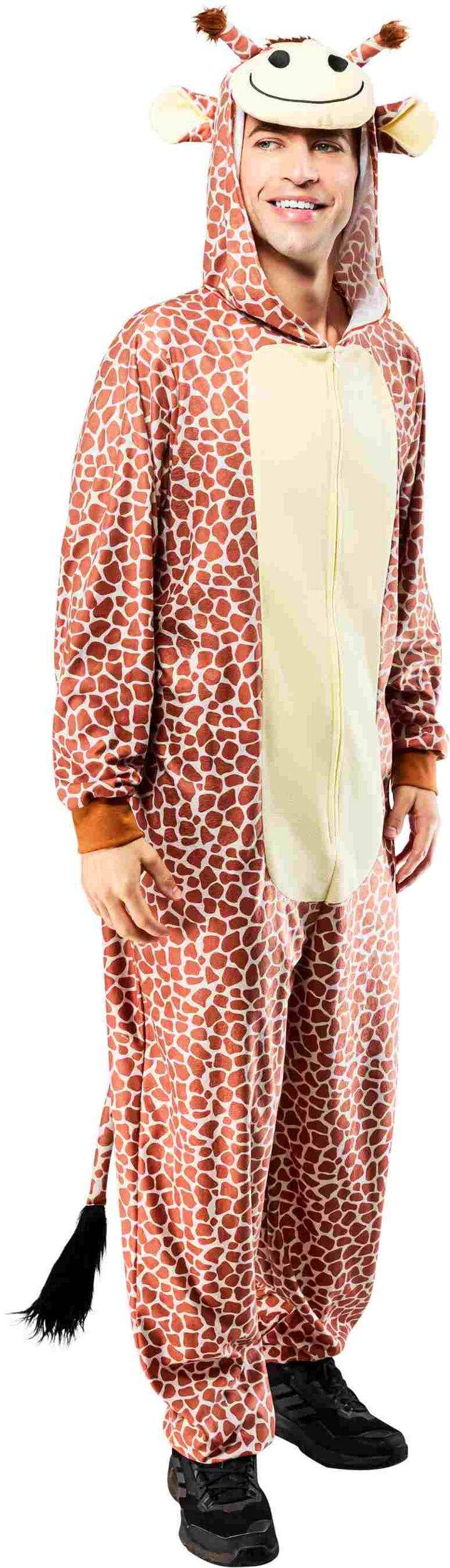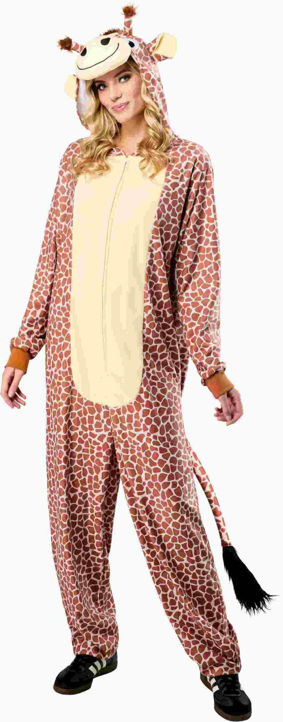 Costume comprenant une combinaison havane avec des taches brunes un capuchon de tête de girafe et une queue
