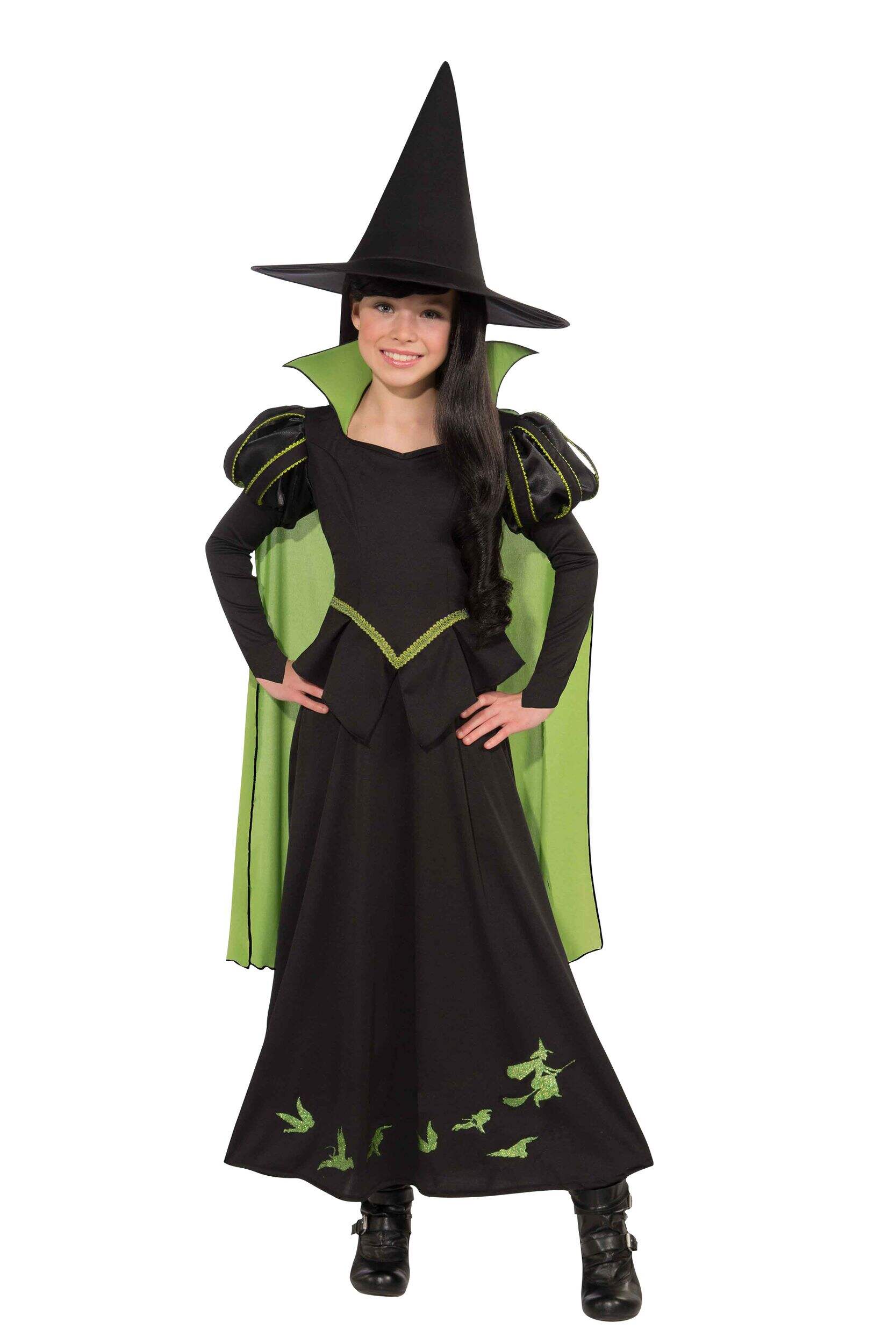 Robe noire à manches longues avec accents dorés et cape assortie avec un grand chapeau pointu