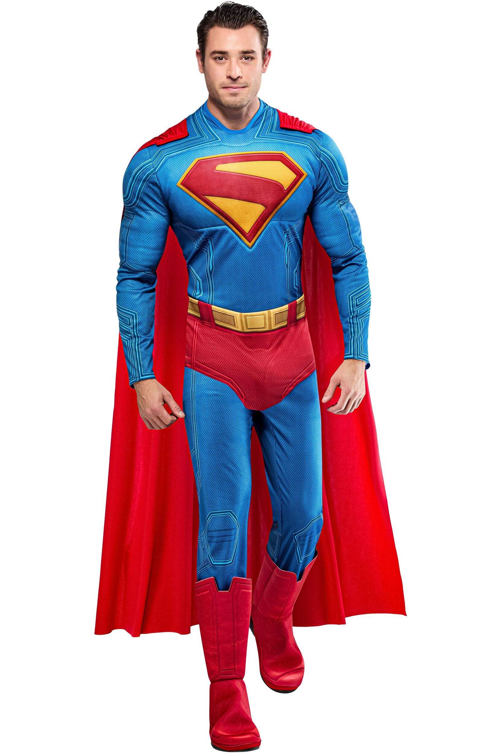 Combinaison classique de Superman rouge et bleue avec couvre-chaussures rouges et cape rouge