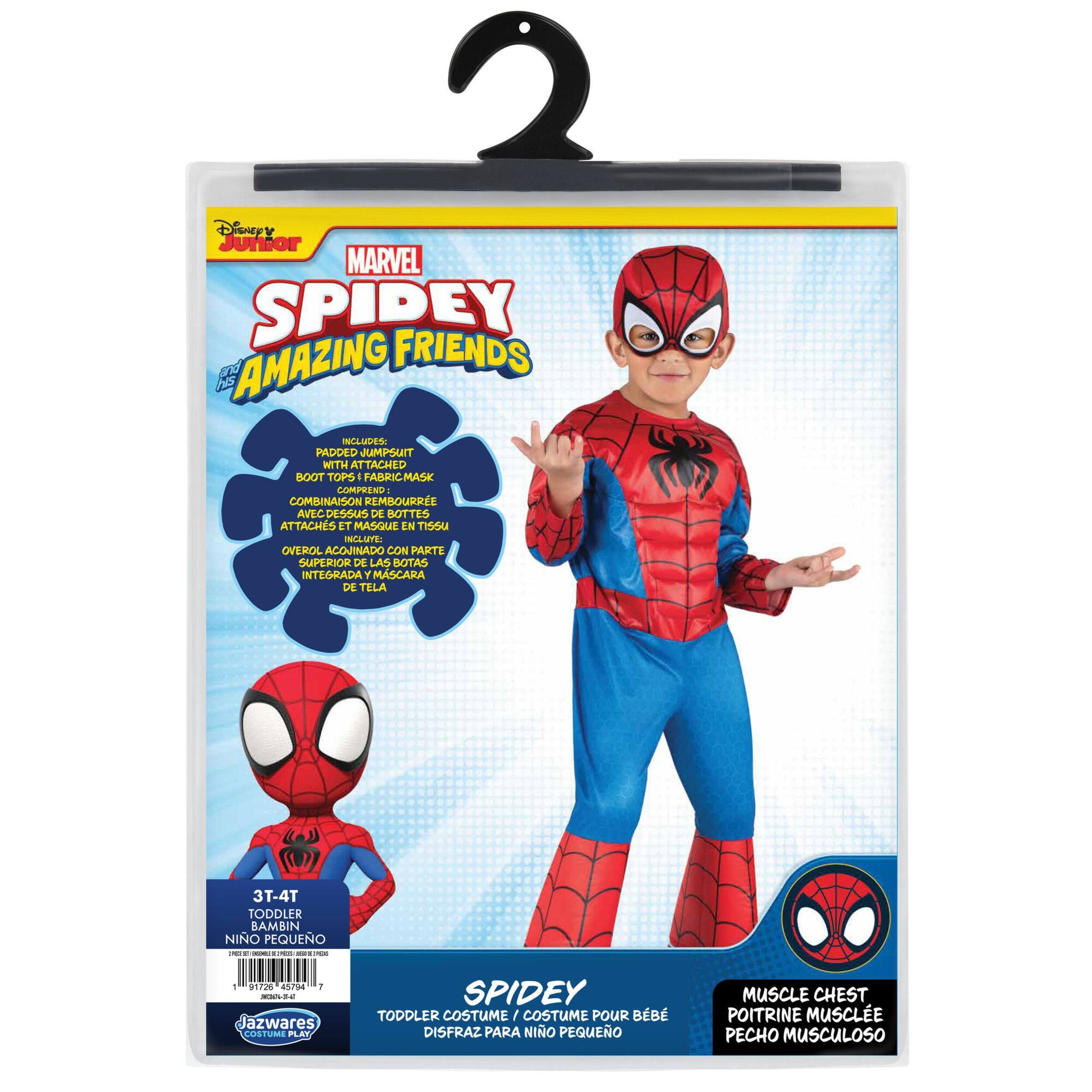 Plongez dans l'action avec le costume d'Halloween officiel de luxe pour tout-petits Spider-Man de Marvel. Dotée d'un motif graphique de la combinaison classique de Peter Parker, cette combinaison imprimée comprend un rembourrage dans la poitrine et les bras et se ferme avec une attache autoagrippante. Elle comprend aussi une coiffe en tissu avec un intérieur en mousse et une sangle élastique. Tous les costumes de superhéros sont faits de matériaux de haute qualité avec des imprimés haute résolution. Jazwares Costume Play contribue au plaisir d'Halloween pour tous les membres de la famille. Article Marvel sous licence officielle de Jazwares.