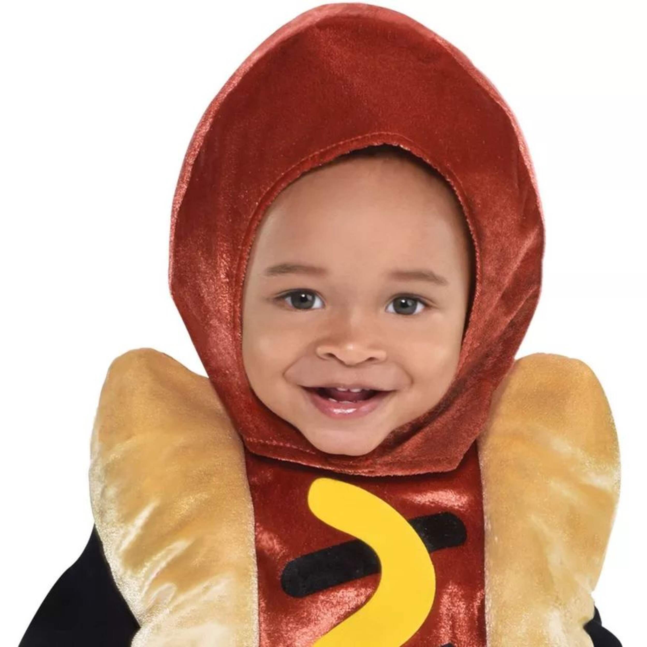 Déguisez votre enfant en adorable hot-dog avec le costume de mini hot-dog, bébés. Ce costume d'Halloween comprend une tunique conçue pour ressembler à un hot-dog avec de la moutarde. Ajoutez le capuchon brun pour hot-dog comme touche finale et ils seront prêts pour l'Halloween en quelques minutes. Référez-vous au tableau de références des tailles pour plus d'information. Chaussures, pantalon et chemise non compris. Nettoyer les taches seulement pour une utilisation durable.