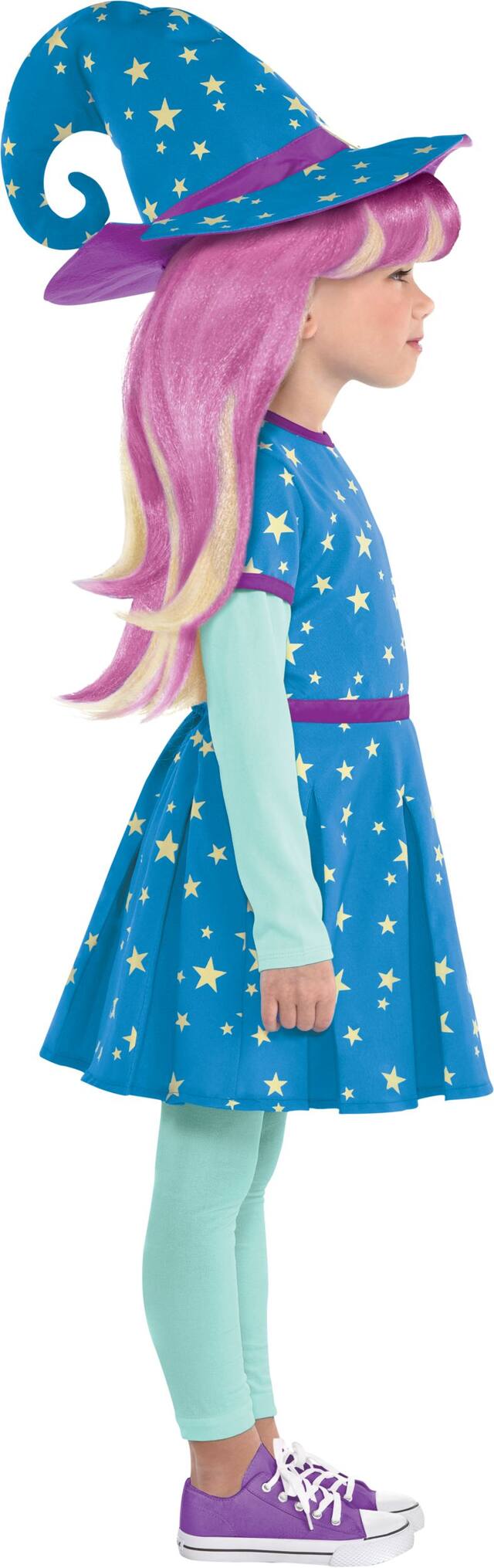 Complétez le costume avec le chapeau étoilé attaché à la perruque de cheveux blonds emblématiques de Katya avec de jolies mèches violettes
