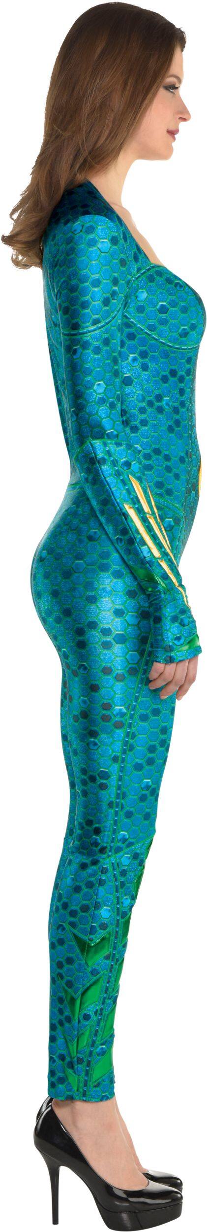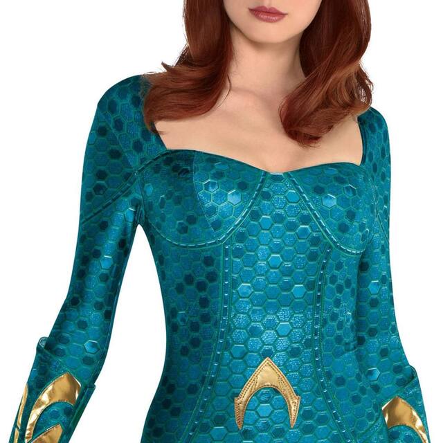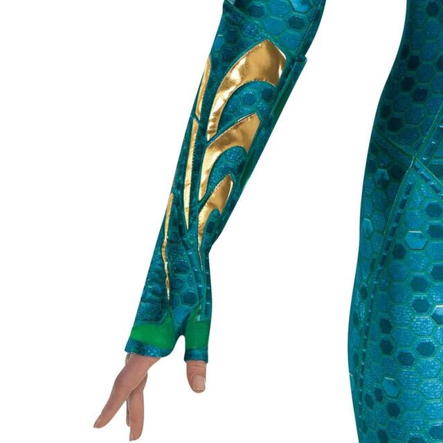 Ces produits similaires présentés ci-dessous pourraient vous intéresser.Combinaison de Mera d'Aquaman pour femmes, turquoise avec détails dorés sur les bras et détails verts sur les jambes
