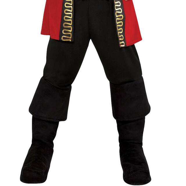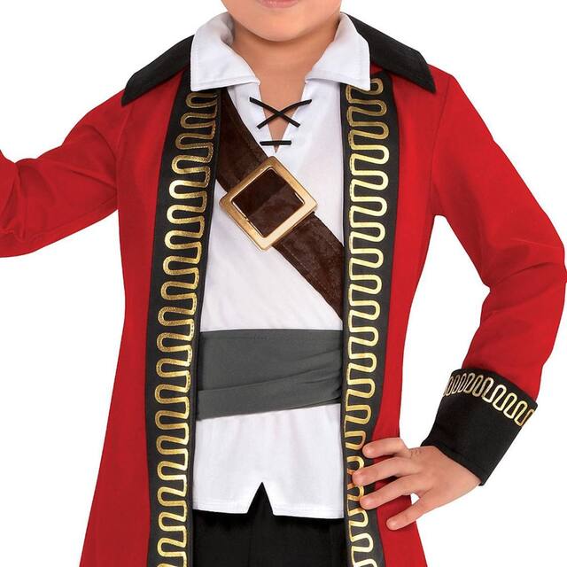 Regardez votre enfant prendre la mer dans ce costume de pirate qui comporte une veste en velours rouge avec un faux suède noir et des détails métalliques imprimés dorés