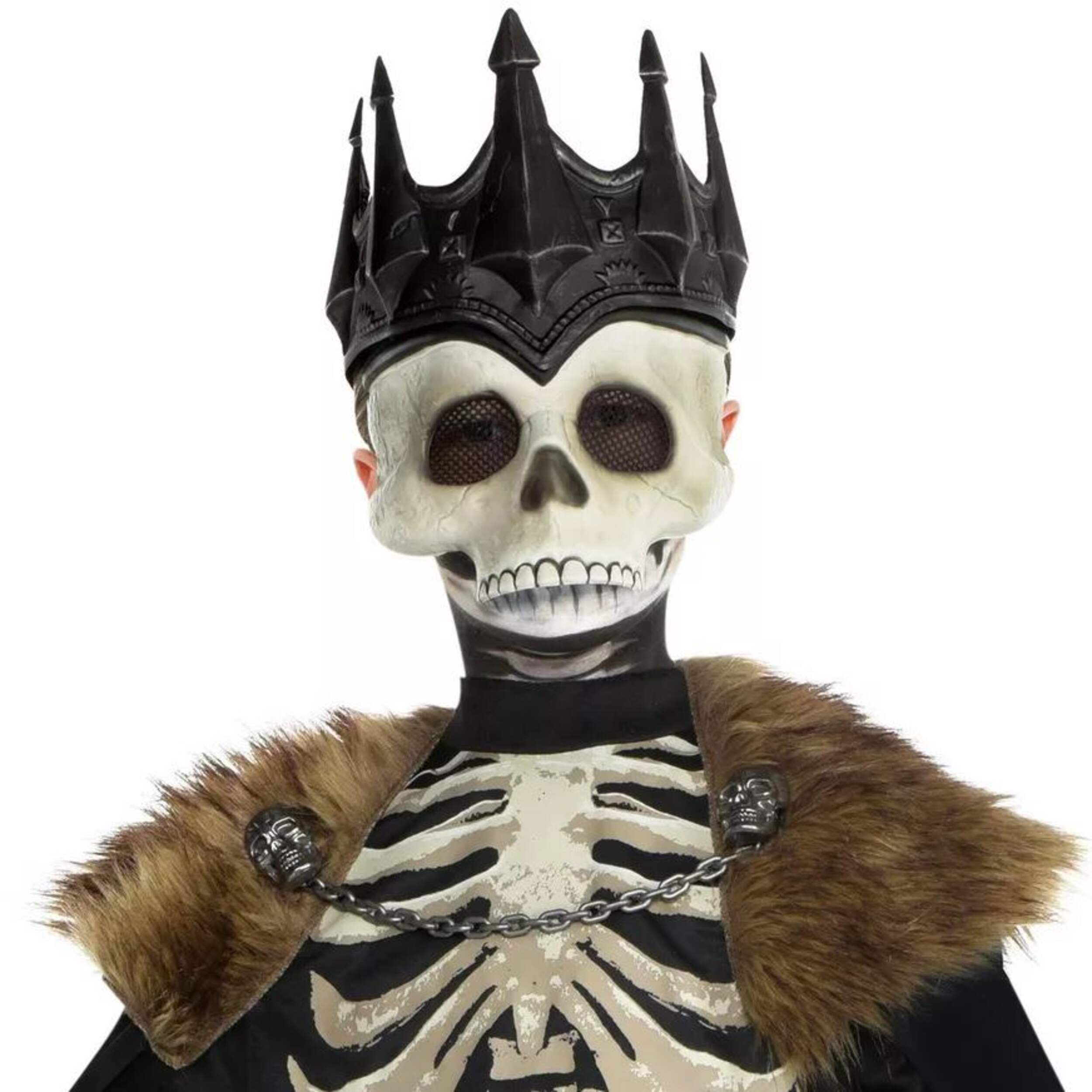 Masque de squelette réaliste avec couronne noire amovible d'aspect métallique complétant la tenue