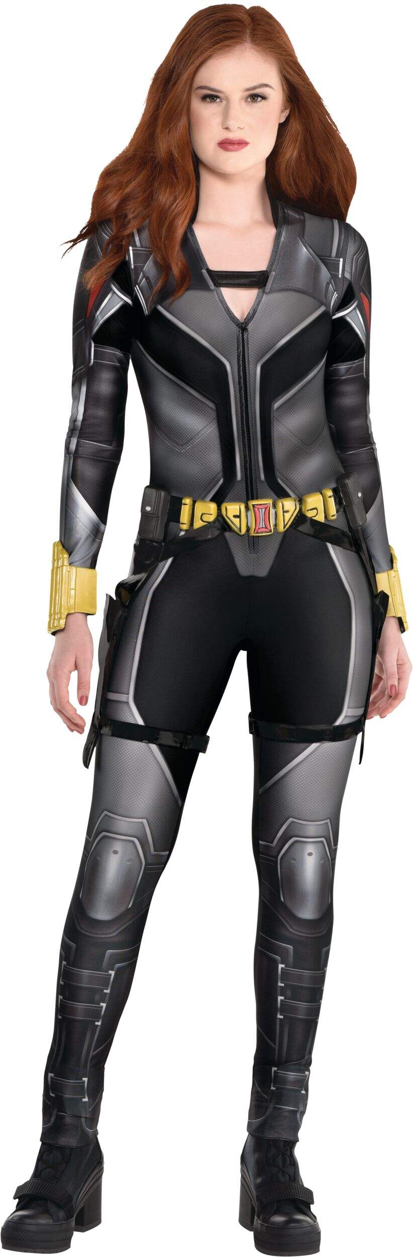 Inspiré par la tenue dans le film La Veuve noire, ce costume comprend une combinaison en polyester noir avec des détails complexes imprimés