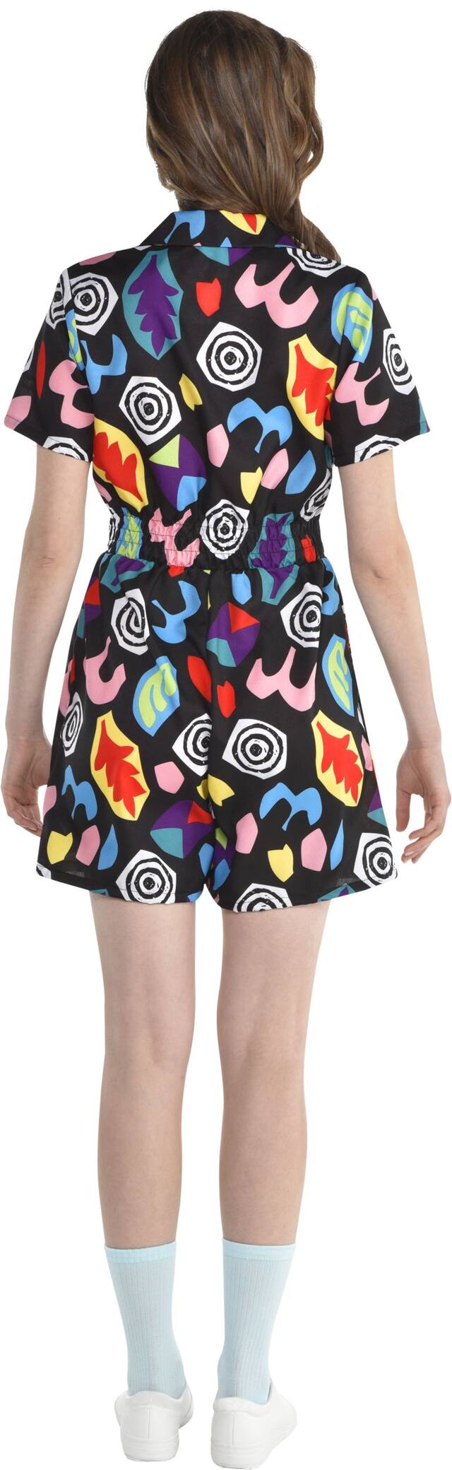 Ces produits similaires présentés ci-dessous pourraient vous intéresser.Costume Mall Eleven de Stranger Things pour adulte composé d'une combinaison noire avec des motifs colorés, semblable à celle que porte Eleven dans la série