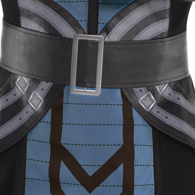 Costume comprend une combinaison avec un tabard attaché, un masque, une capuche, une ceinture et 6 pièces d'armure moulées
