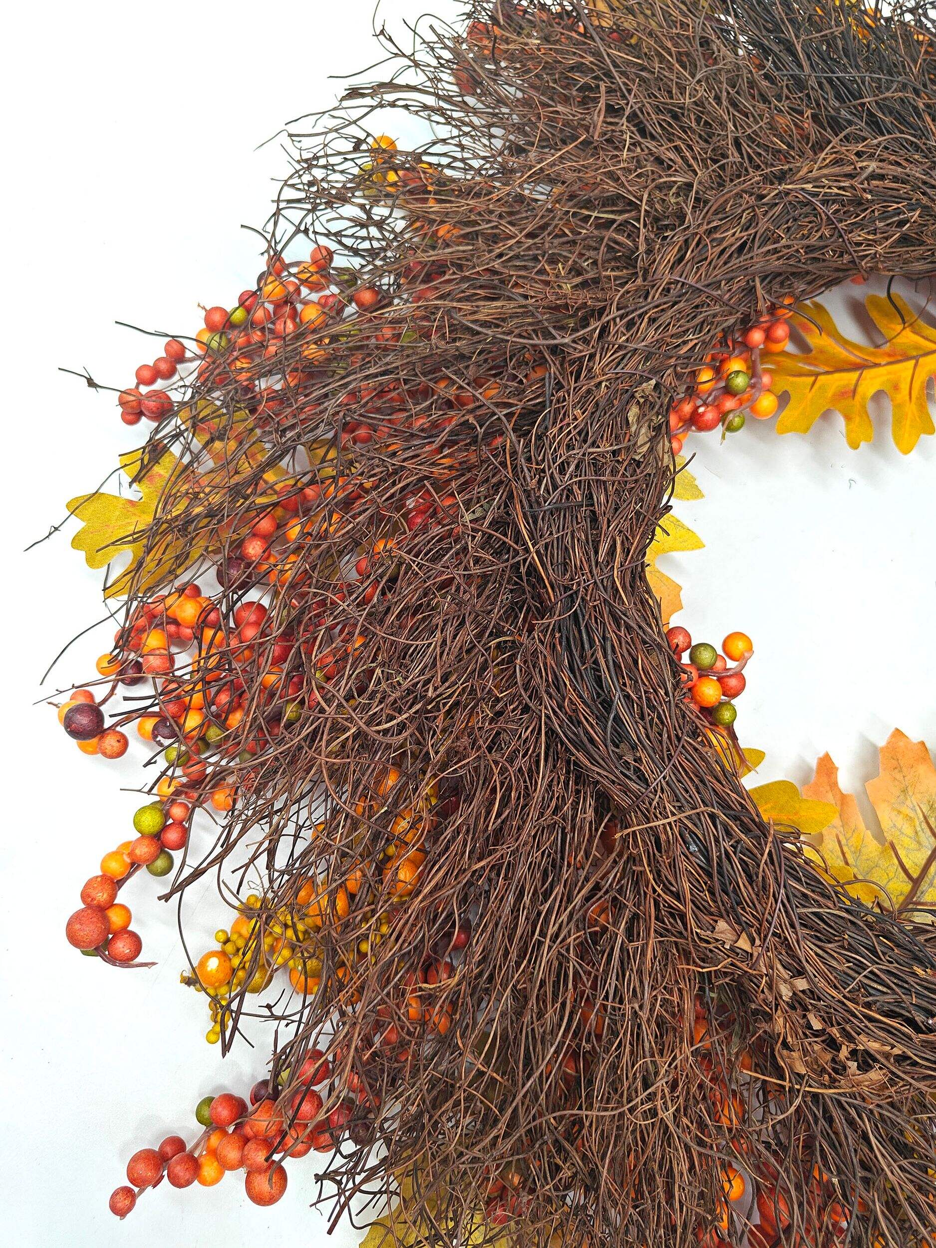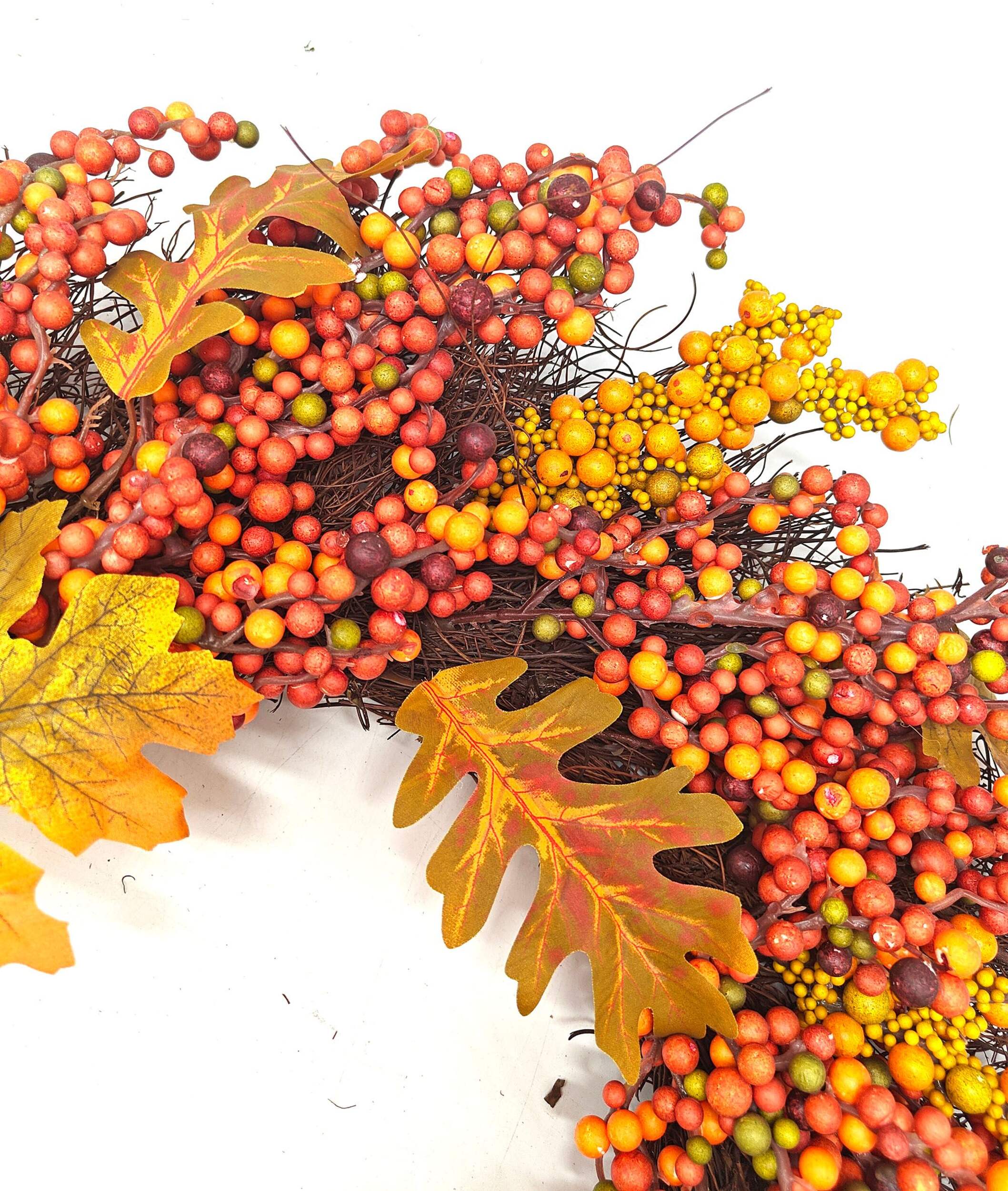 Couronne de feuilles et de baies CANVAS comprenant des baies rouges et orange et des feuilles de récolte vertes