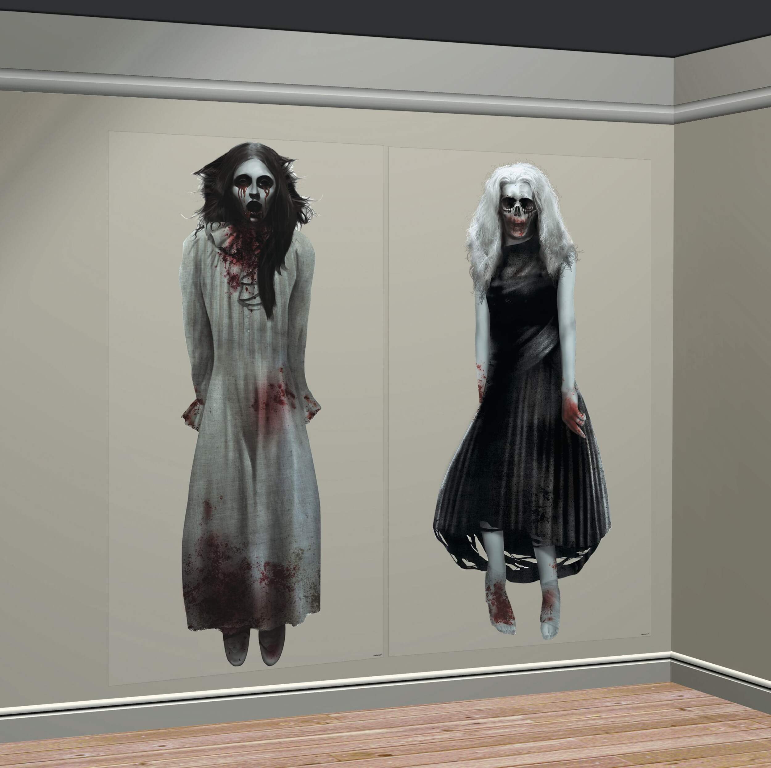 Créez l'ambiance de votre fête d'Halloween effrayante avec ce décor mural de filles fantômes d'Amscan