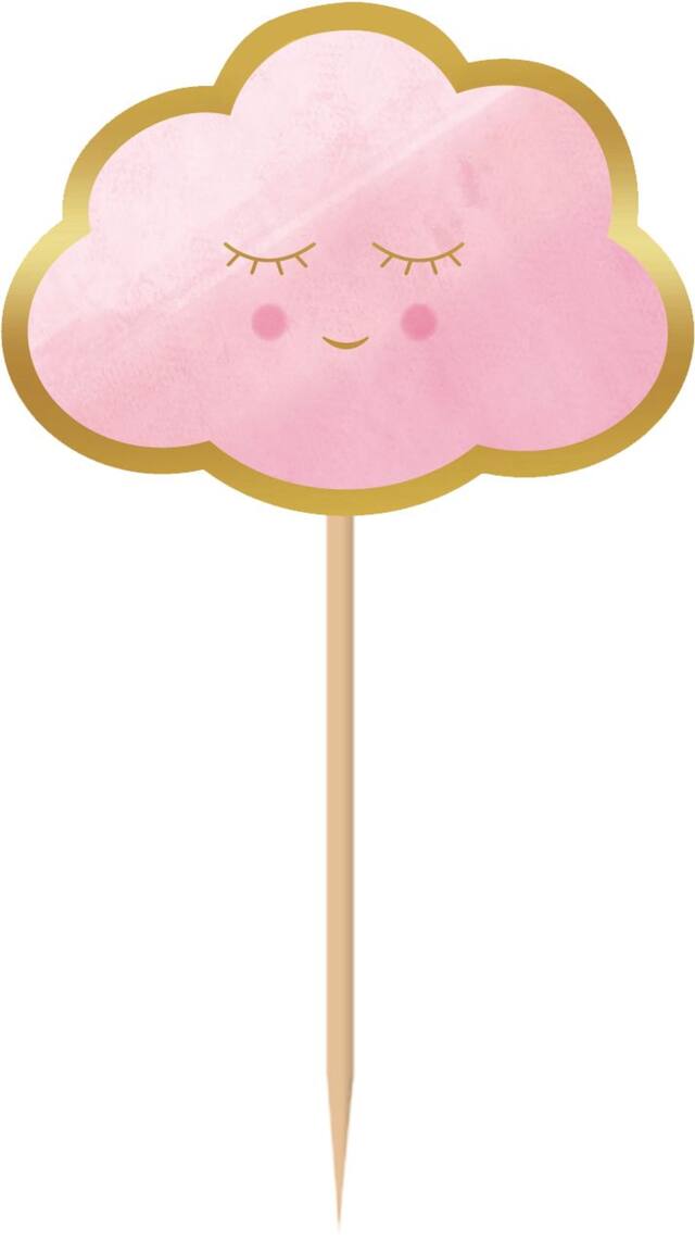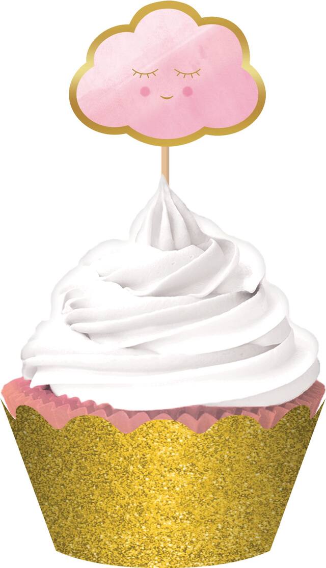Comprend des moules à petits gâteaux roses, des emballages de petits gâteaux dorés scintillants et des décorations de petits gâteaux en forme de nuages roses avec bordure dorée