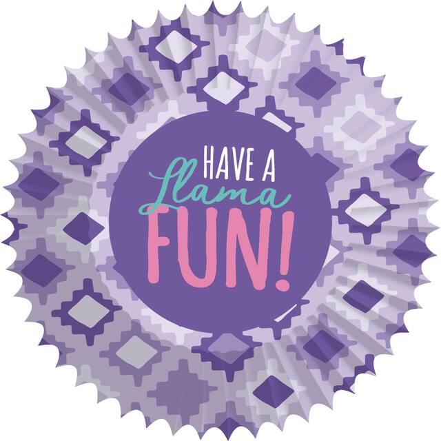 • Faites cuire vos gâteries dans les moules à gâteaux en papier mauve avec le message « Have a Llama Fun! »