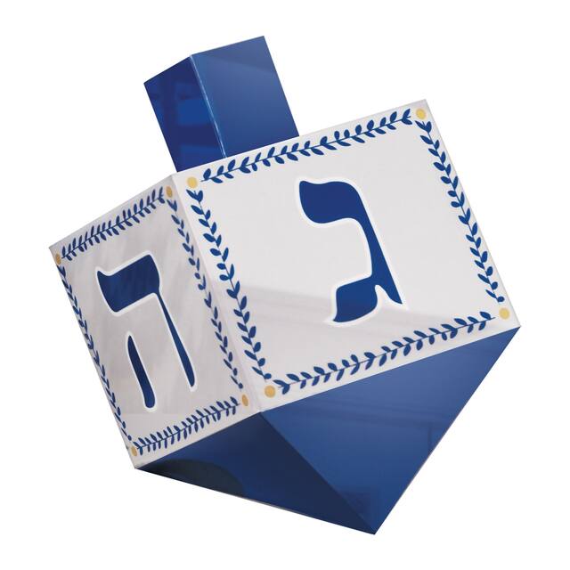Toupies de Hanoukka en papier bleu et blanc avec des lettres hébraïques