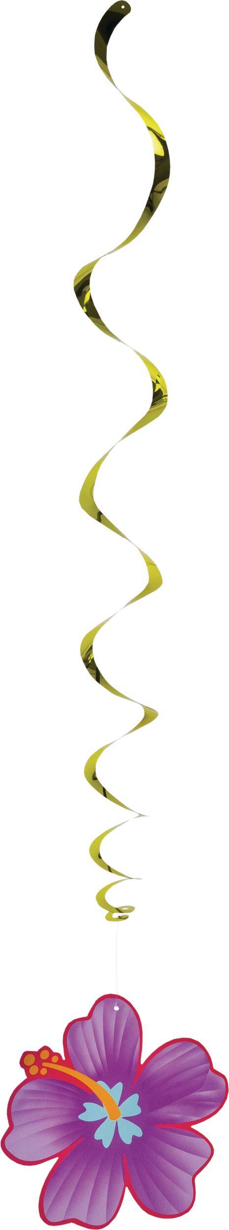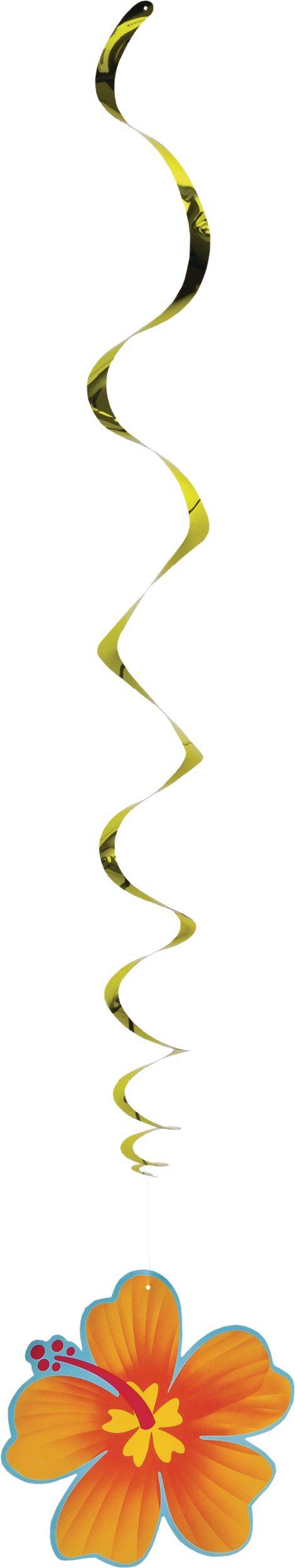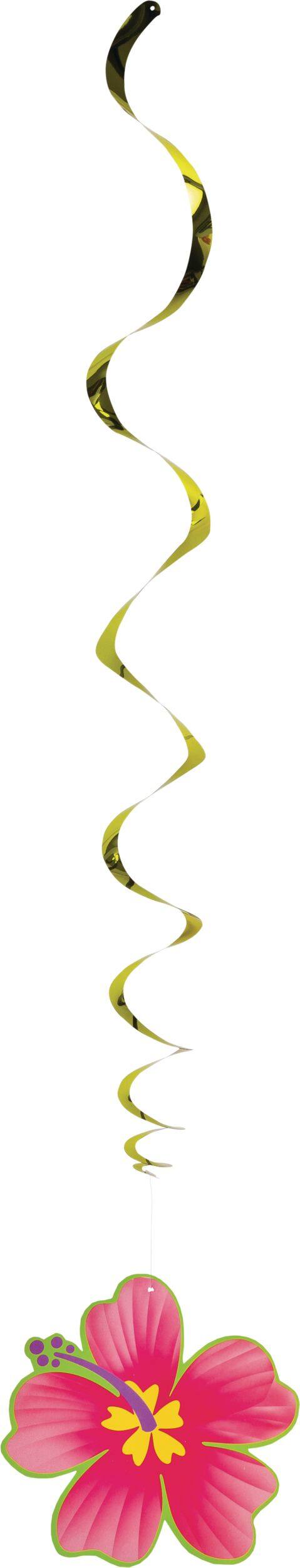 Découpes d'hibiscus à double face en papier cartonné fixées aux décorations de spirales en plastique léger et éclatant, sont faciles à installer à l'intérieur ou à l'extérieur avec de la gommette (vendue séparément)