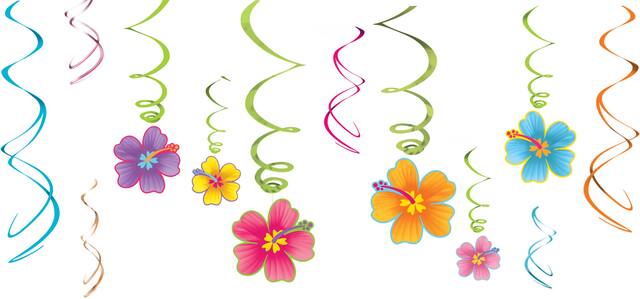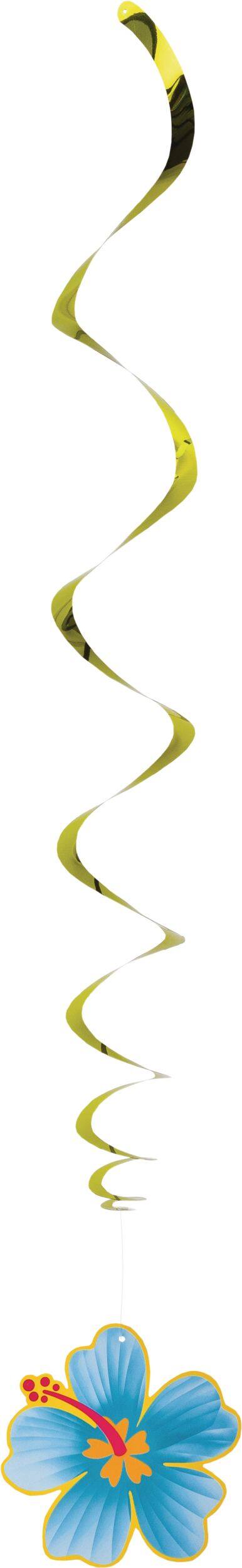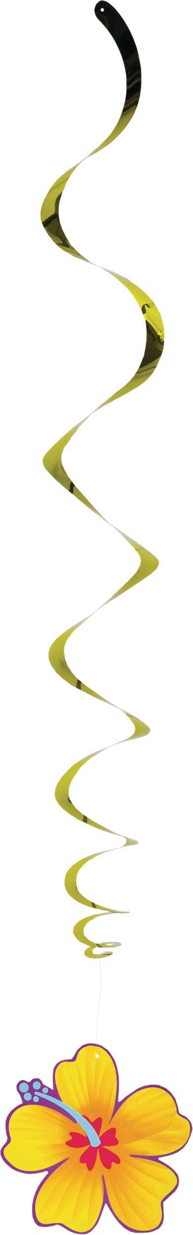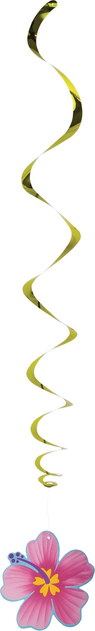 Découpes d'hibiscus à double face en papier cartonné fixées aux décorations de spirales en plastique léger et éclatant, sont faciles à installer à l'intérieur ou à l'extérieur avec de la gommette (vendue séparément)