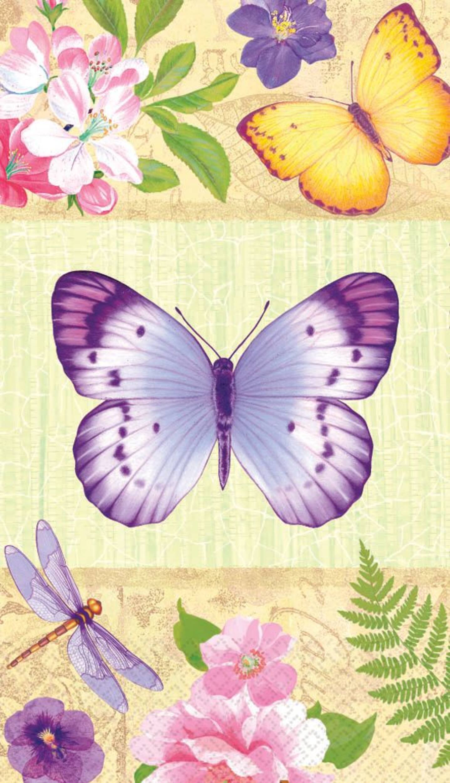 Ces produits similaires présentés ci-dessous pourraient vous intéresser.Essuie-main d'invité, dans le jardin, avec des papillons, des fleurs et des libellules dans des teintes pastel, le tout sur un fond beige crémeux