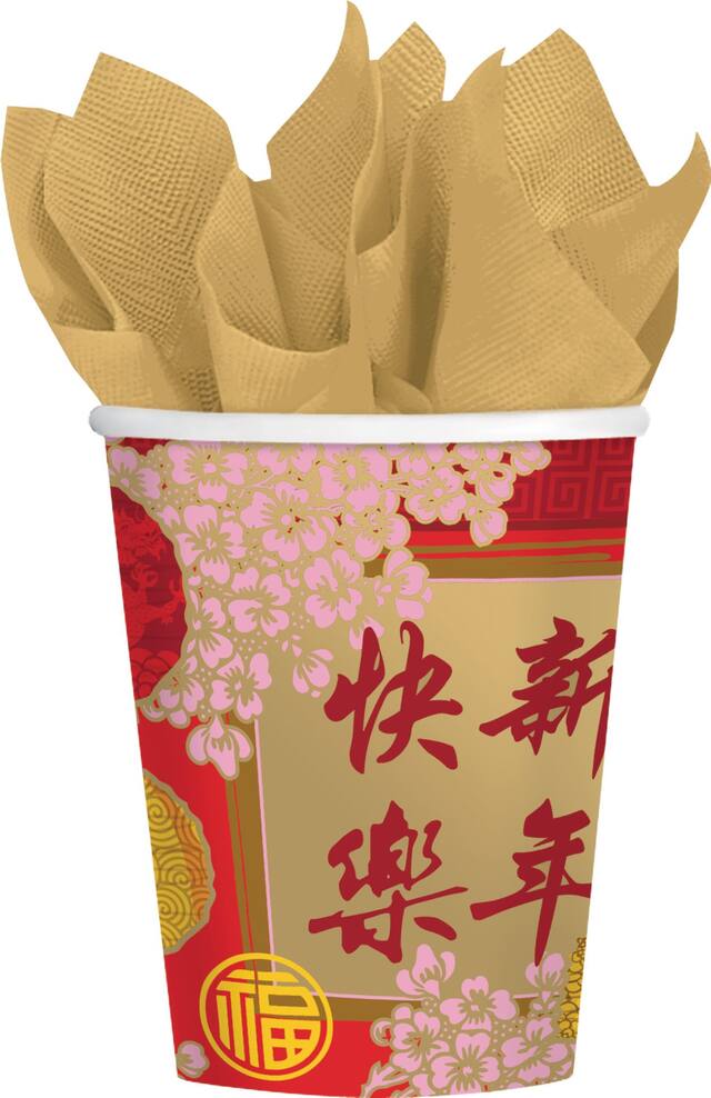 Avec une magnifique calligraphie chinoise, ces gobelets rouges, dorés, jaunes et roses s'harmoniseront parfaitement avec le reste de vos décorations du Nouvel An lunaire