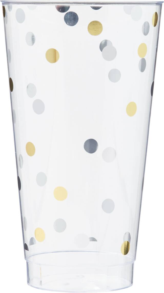 Ces produits similaires présentés ci-dessous pourraient vous intéresser.Gobelets en plastique de qualité supérieure Confetti doré et argenté métallique dotés d'un motif à pois doré et argenté métallique