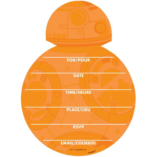 Arborant une forme de droïde BB-8 originale, ces invitations de fête sont parfaites pour une fête d’anniversaire sur le thème de Star Wars