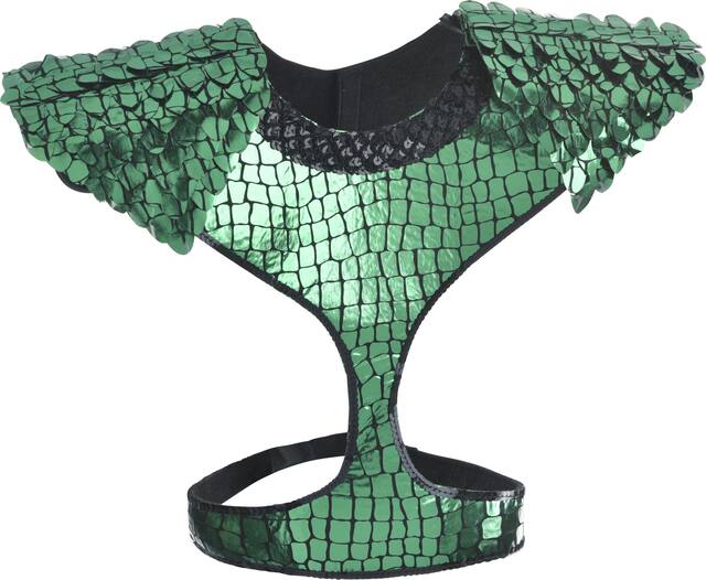 Harnais en tissu à écailles iridescentes vertes et paillettes noires au col