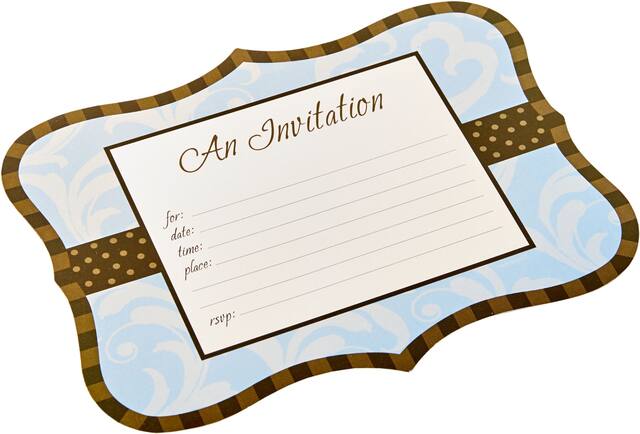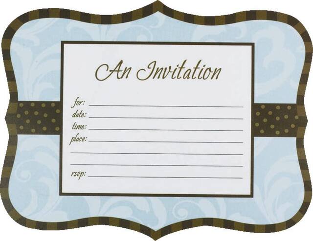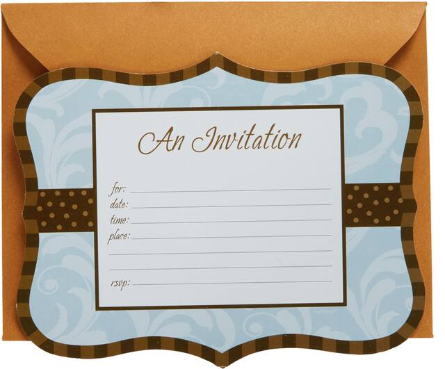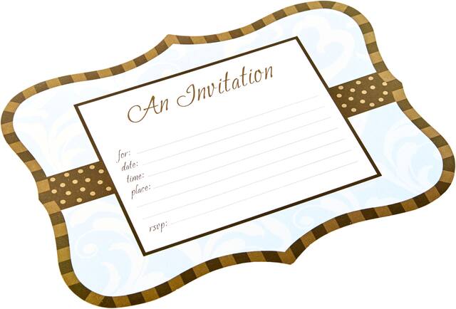 Vient avec une ligne brune en bordure, une ligne au centre avec des pois bruns et le titre « An Invitation »