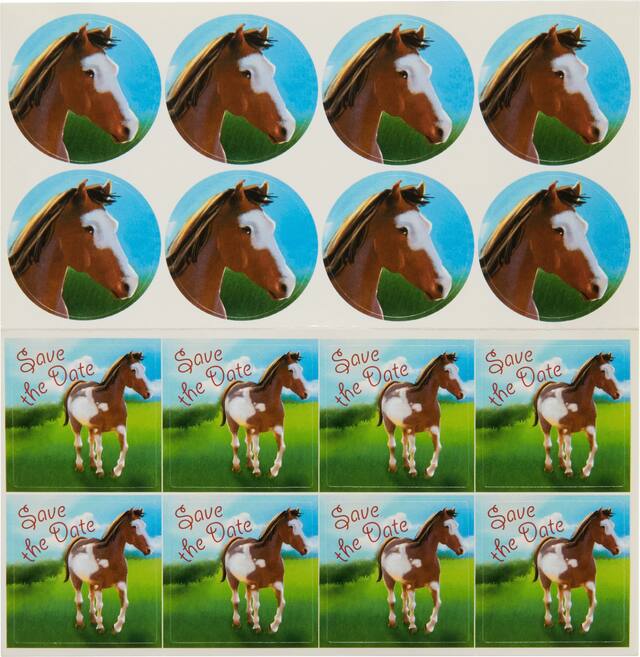 Invitation : 4 3/4 po la x 6 po L, Sceau autocollant : 1 1/4 po de diamètre, Autocollant Réservez la date : 1 1/4 x 1 1/4 po