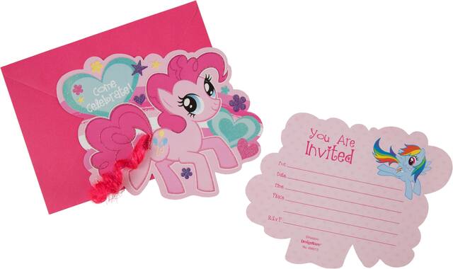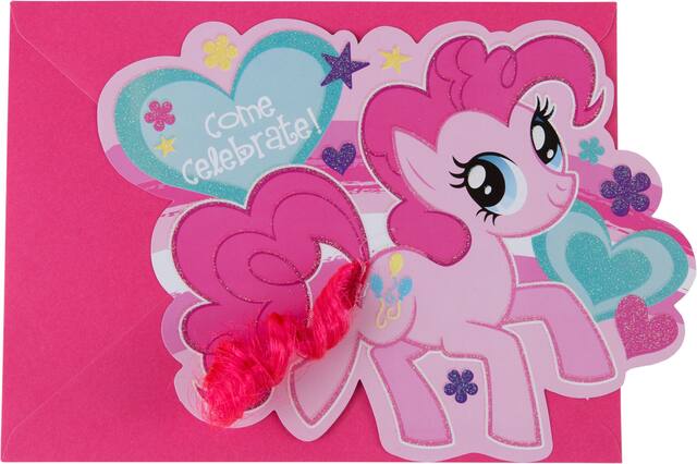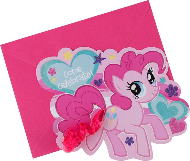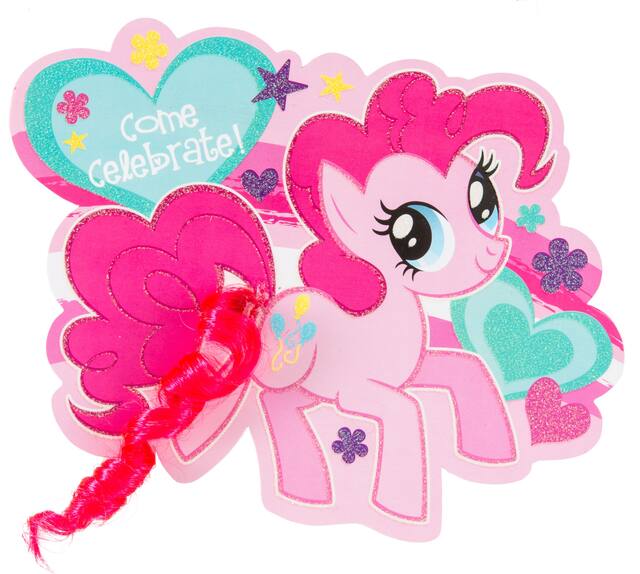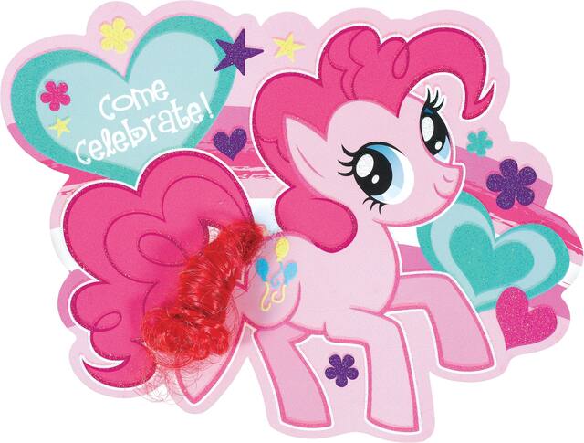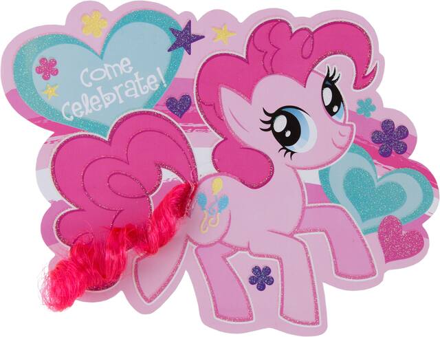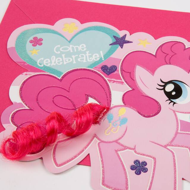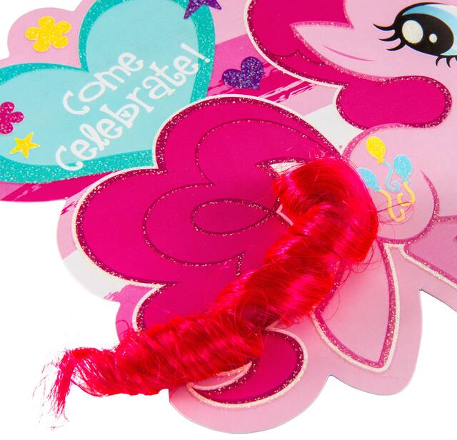 Ces produits similaires présentés ci-dessous pourraient vous intéresser.Invitations scintillantes Pinkie Pie de luxe, Mon petit poney, dotées de cheveux roses frisés attachés à la queue de Pinkie Pie