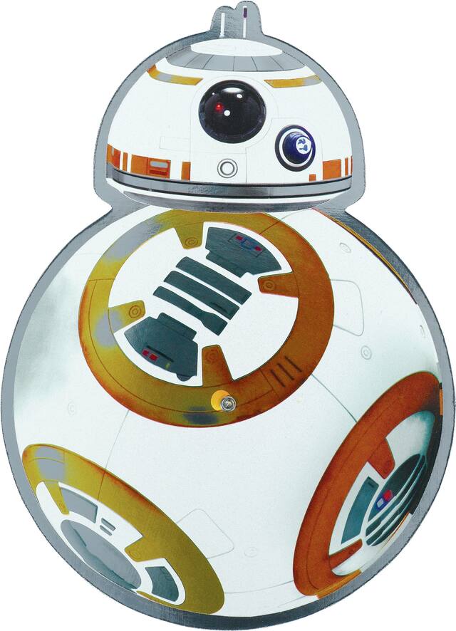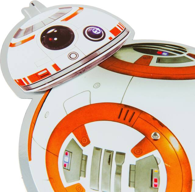 Comprend le gentil compagnon de Star Wars 7 Le Réveil de la Force, ces invitations de format carte postale tournent vraiment comme le petit droïde rond
