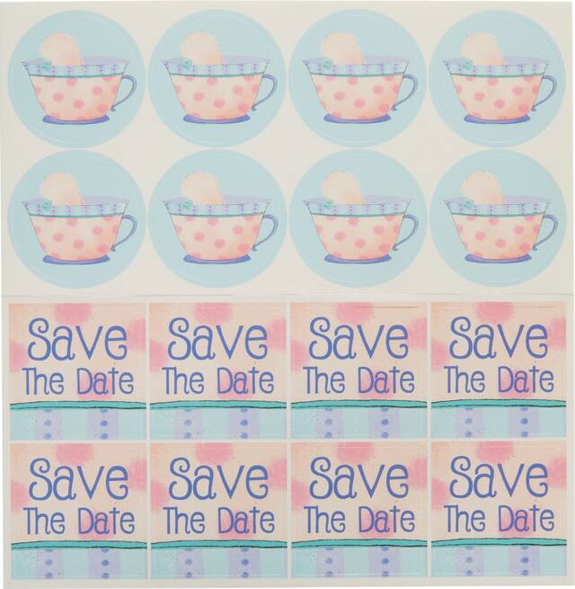 Invitation : 4 3/ 4 po la x 6 po, Sceau autocollant : 1 1/4 po de diamètre, autocollants Retenez la date : 1 1/4 x 1 1/4 po