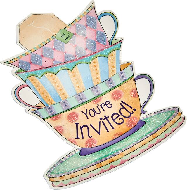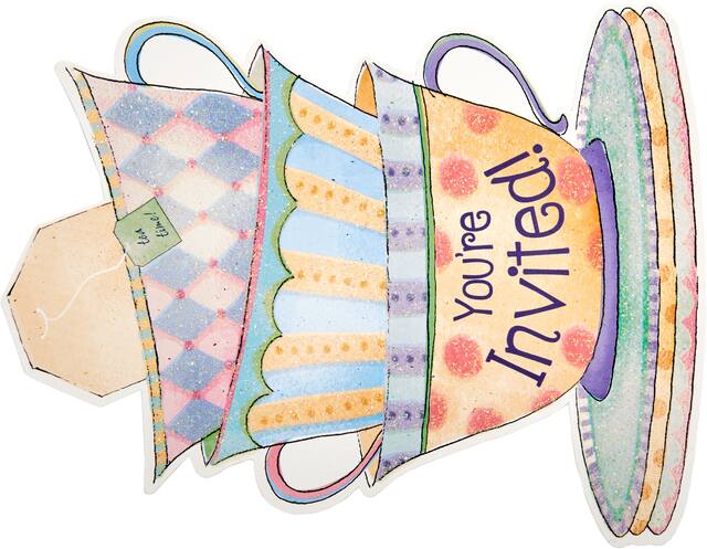 Ces produits similaires présentés ci-dessous pourraient vous intéresser.Invitations Tasse de thé scintillante ressemblant à des tasses de thé à motifs empilées sur une soucoupe