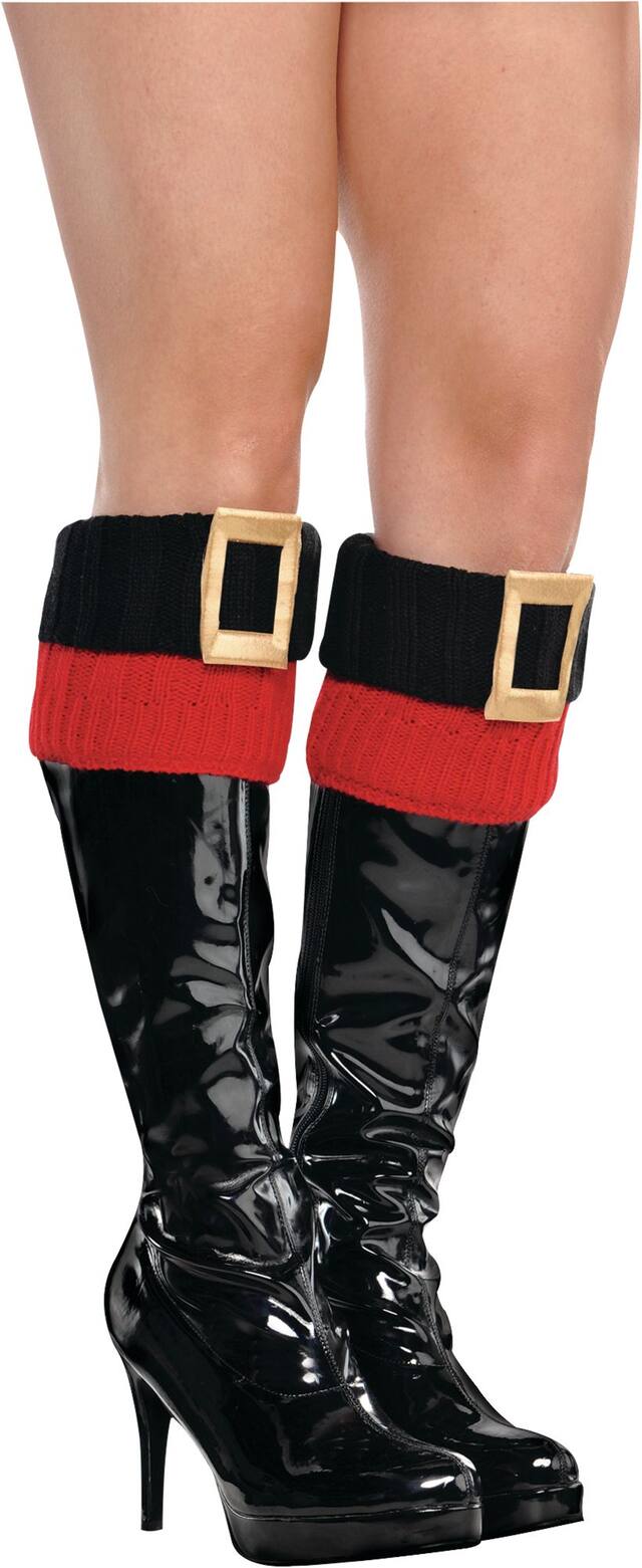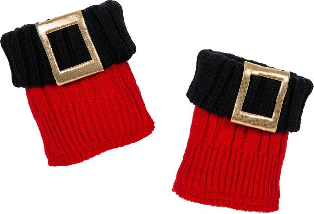 Ces produits similaires présentés ci-dessous pourraient vous intéresser.Jambières rouges pour bottes avec thème de père Noël rouge et blanc avec une boucle de ceinture dorée scintillante