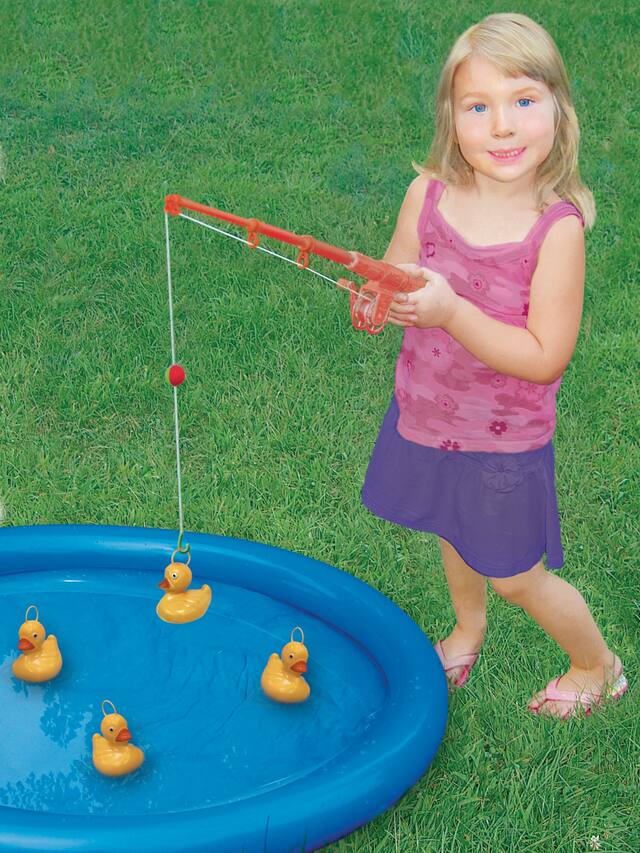 Comprend une piscine gonflable peu profonde pour enfants, une canne à pêche avec moulinet fonctionnel et 5 canards en plastique jaune