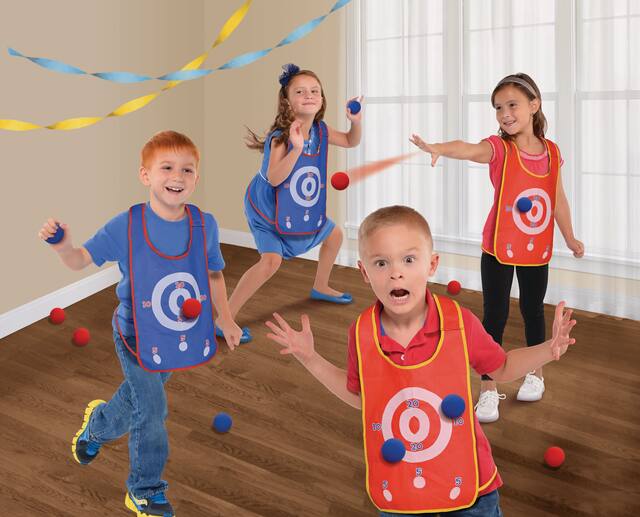 • Ensuite, distribuez les balles colorées en tissu et laissez les équipes lancer les balles à leurs adversaires, en essayant de se rapprocher le plus possible du centre de la cible
