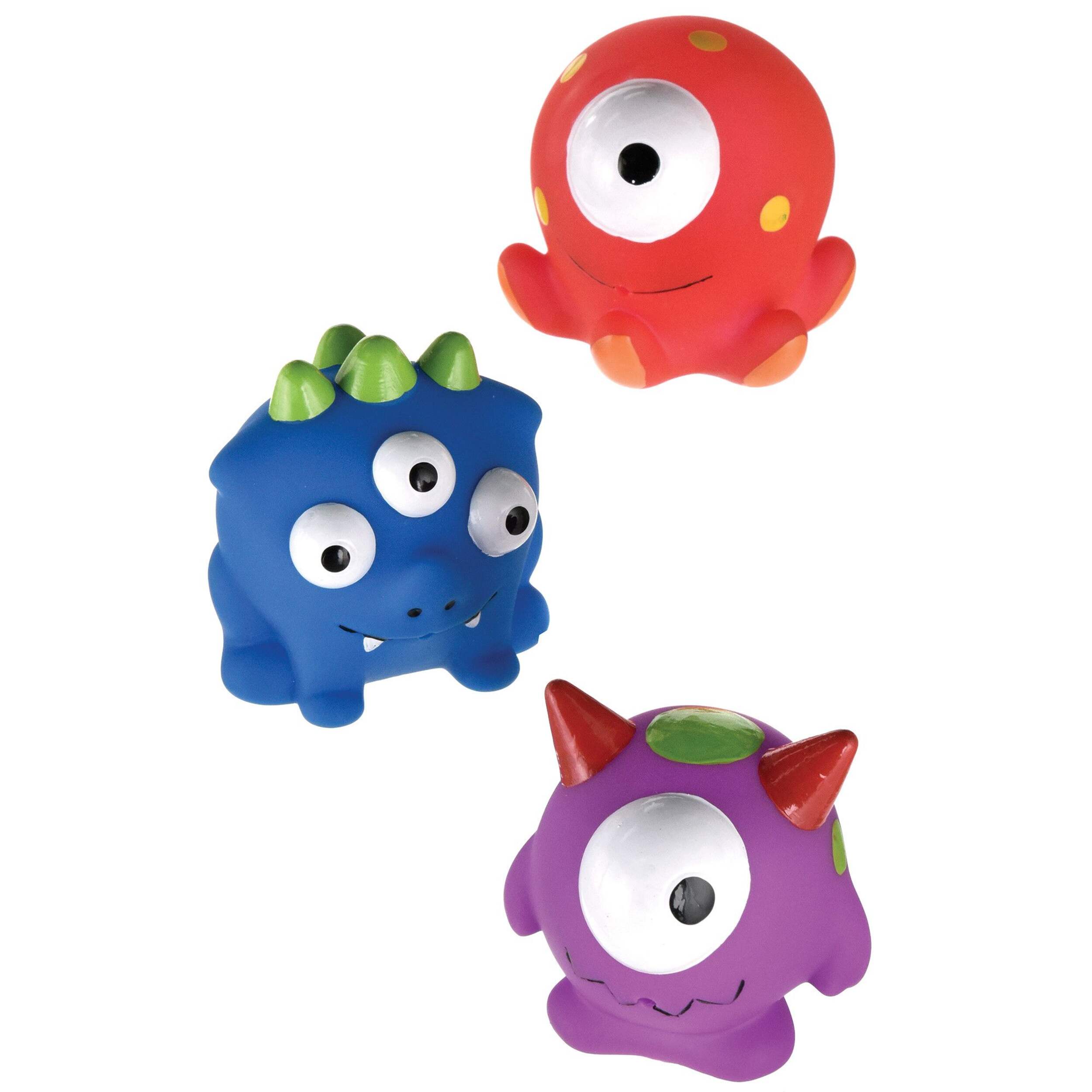 Il y a des monstres partout! Remplissez ces monstres colorés en plastique avec de l'eau, puis pressez-les pour leur faire tirer un jet d'eau