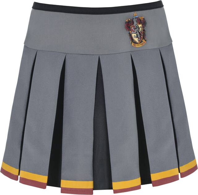Jupe en polyester gris ornée du logo Gryffondor sur la taille et bordure rouge et jaune au bas