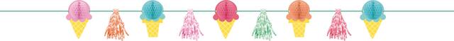 Comprend également une mini banderole alvéolée avec des cornets de crème glacée et des pampilles métallisées colorées
