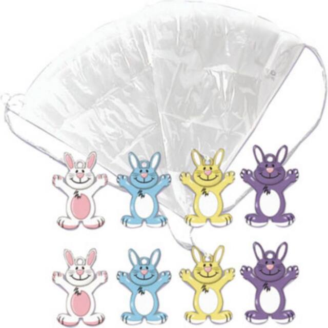 Ces produits similaires présentés ci-dessous pourraient vous intéresser.Lapins de Pâques parachutistes comportant de petits lapins souriants aux couleurs pastel fixés à de petits parachutes en plastique