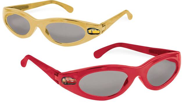 Montures dorées et rouges métalliques dotées de caméos de Flash McQueen et Cruz Ramirez