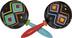Ces produits similaires présentés ci-dessous pourraient vous intéresser.Maracas rondes noires dotées de motifs de losanges colorés et de poignées rouges ou bleues