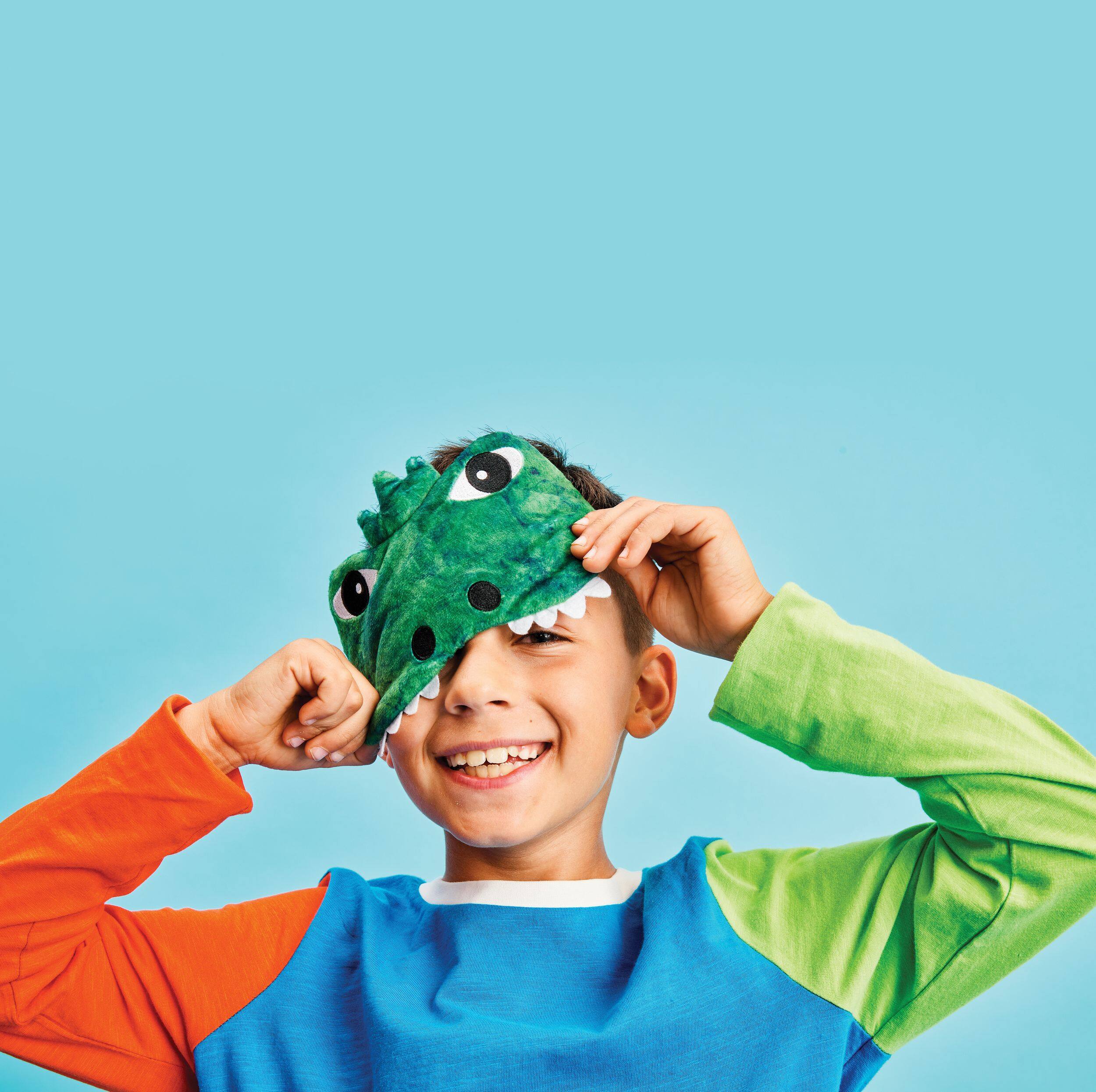 Détendez-vous avec le masque Dino Mite, qui comprend un masque pour les yeux sur le thème des dinosaures en forme de dinosaure vert!