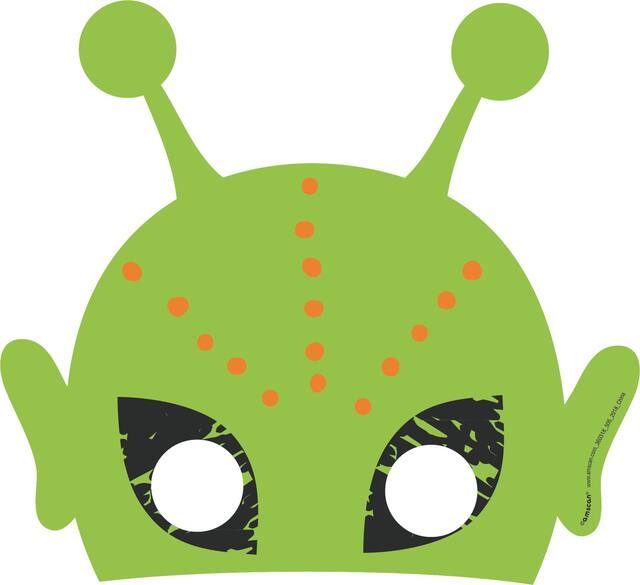 Masques anniversaire fusée qui sont des masques en papier cartonné qui ressemblent à des astronautes et à des extraterrestres et qui sont facilement fixés avec des élastiques