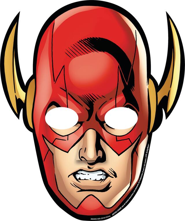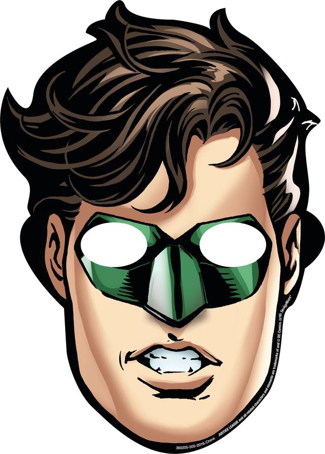 Masques en papier cartonné mettant en vedette Superman, Batman, Flash et Green Lantern avec des bandes élastiques et des ouvertures pratiques pour le nez