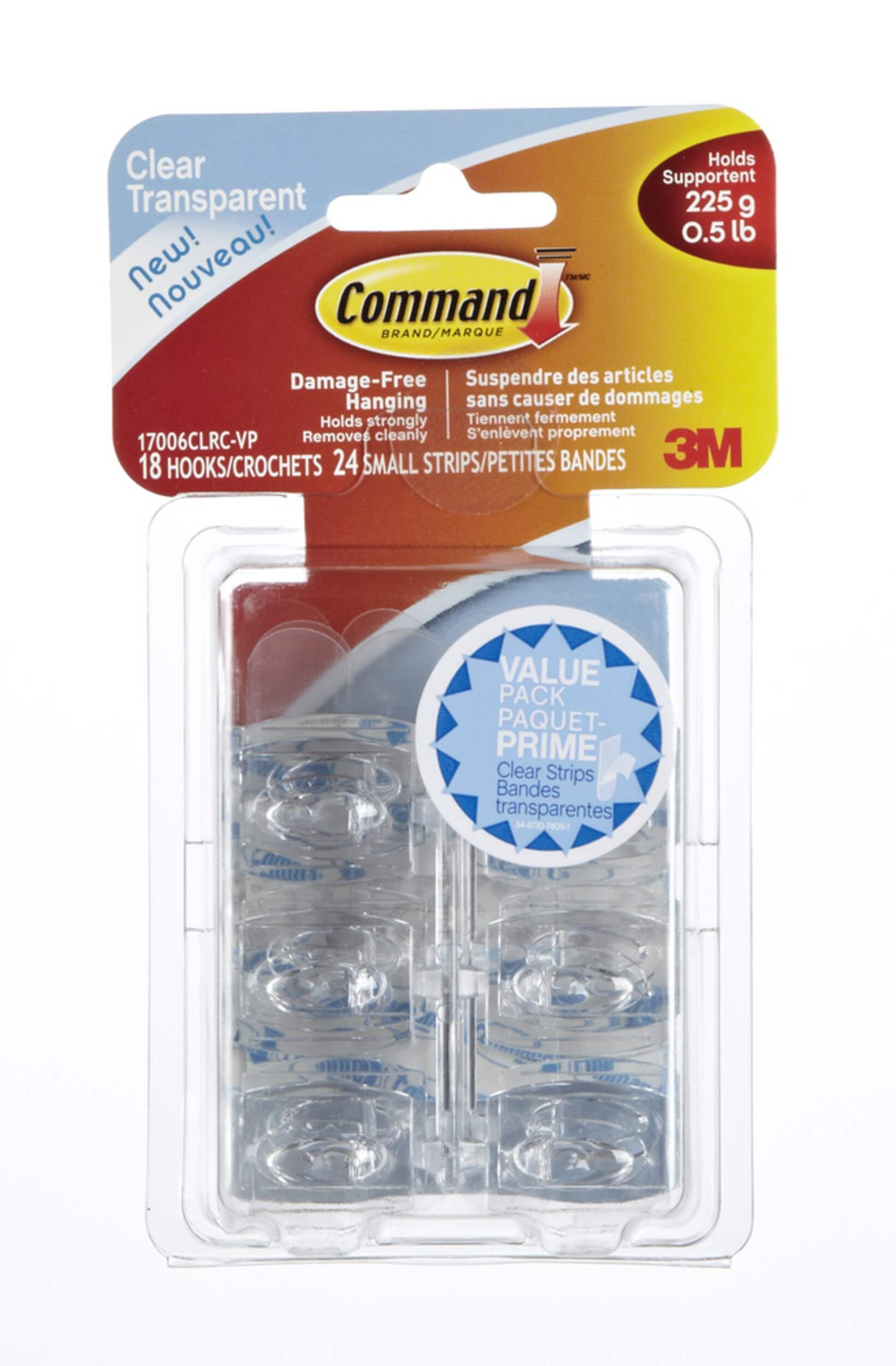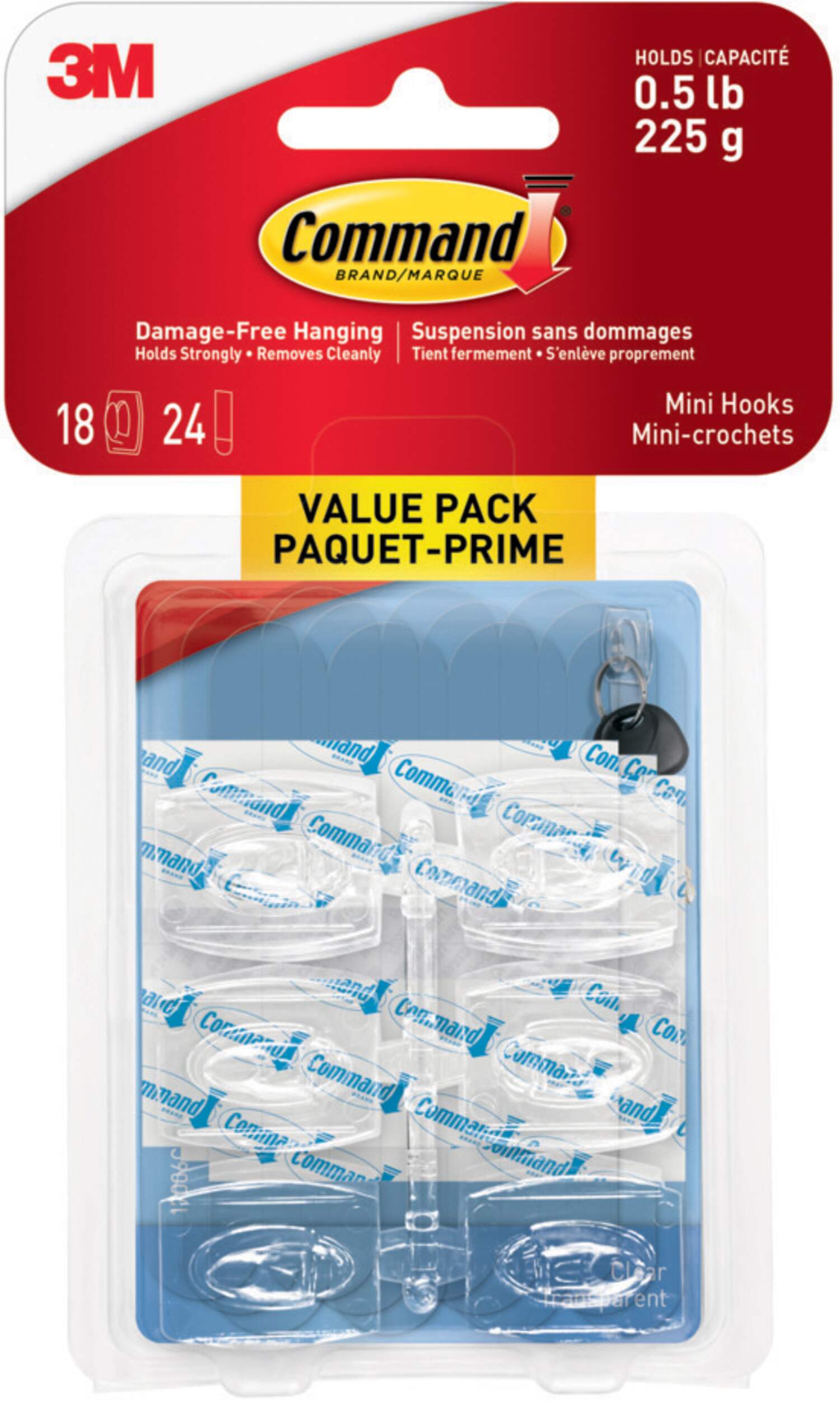 Paquet de 18 mini crochets transparents et 24 bandes adhésives transparentes