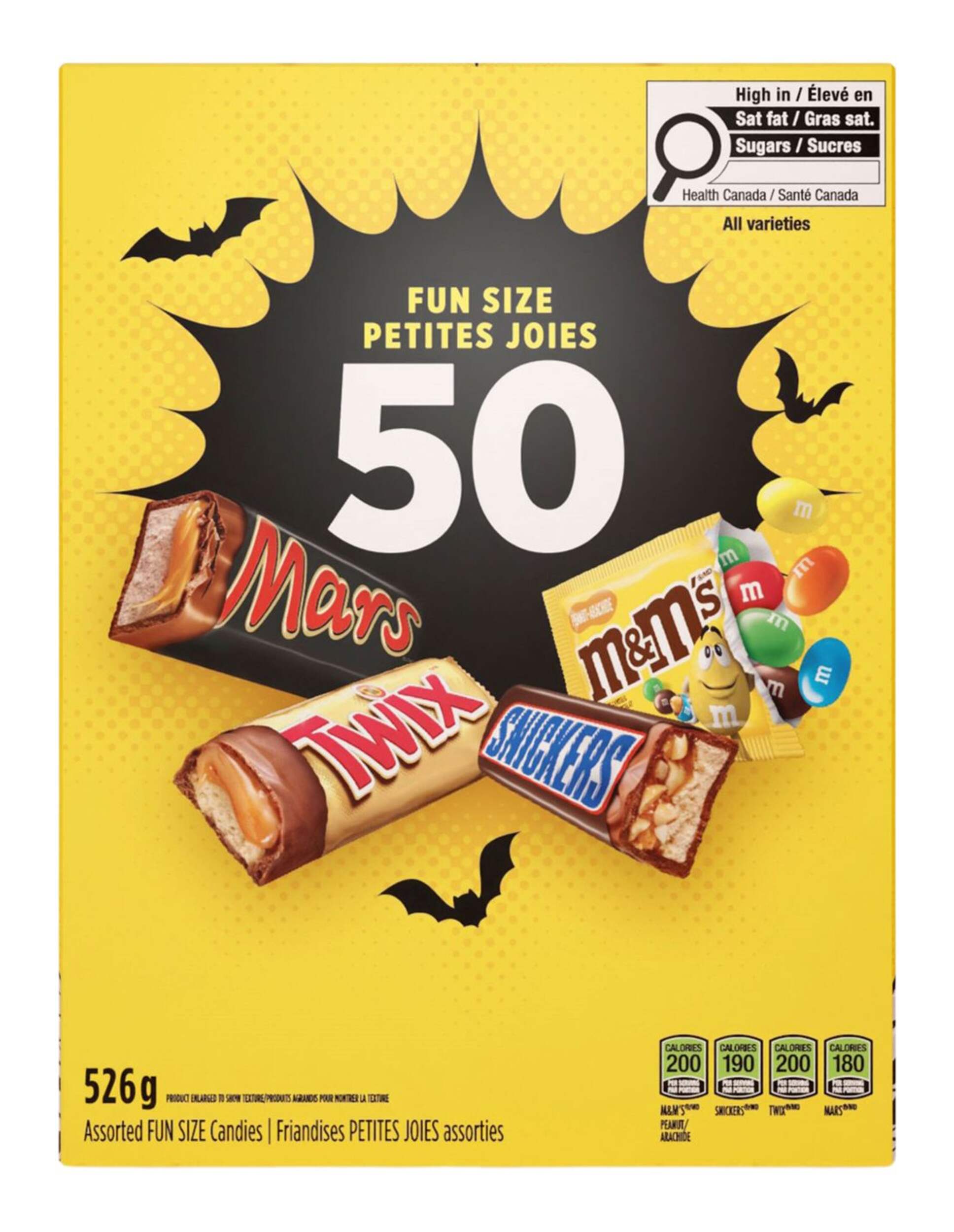 Ces produits similaires présentés ci-dessous pourraient vous intéresser.Cet assortiment de bonbons de Mars offre 50 mini-barres de vos gâteries au chocolat d'Halloween préférées. Contenant des friandises populaires comme Twix, Mars, M&M's aux arachides, M&M's au chocolat au lait et Snickers, ce paquet de bonbons assortis offre une version en bouchées de ces barres de chocolat classiques emballées individuellement.